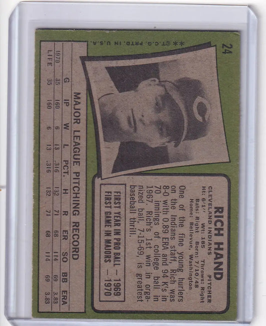 1971 Topps Baseball #24 Rich Hand - Cleveland Indians RC