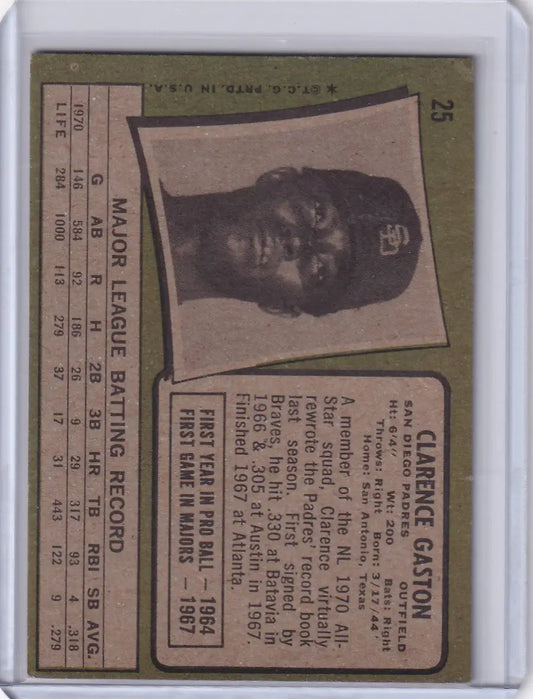 1971 Topps Baseball #25 Cito Gaston - San Diego Padres