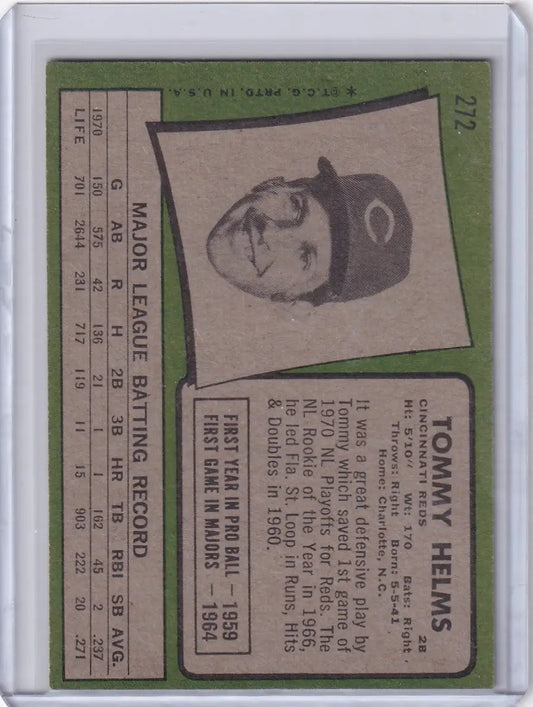1971 Topps Baseball #272 Tommy Helms - Cincinnati Reds