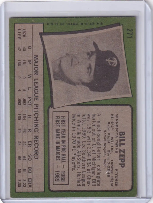 1971 Topps Baseball #271 Bill Zepp - Minnesota Twins