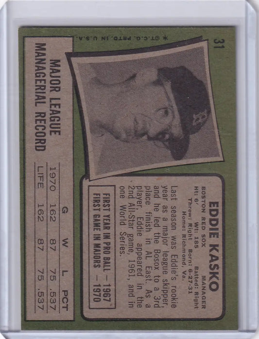 1971 Topps Baseball #31 Eddie Kasko - Boston Red Sox