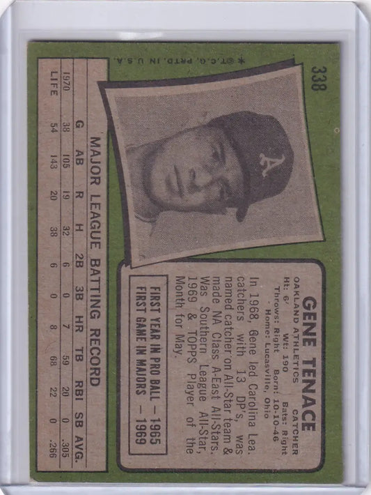 1971 Topps Baseball #338 Gene Tenace - Oakland Athletics