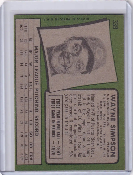 1971 Topps Baseball #339 Wayne Simpson - Cincinnati Reds