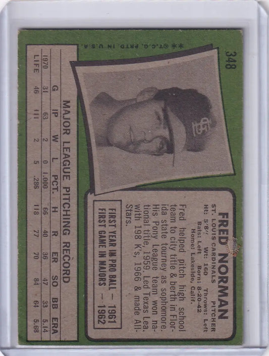 1971 Topps Baseball #348 Fred Norman - St. Louis Cardinals