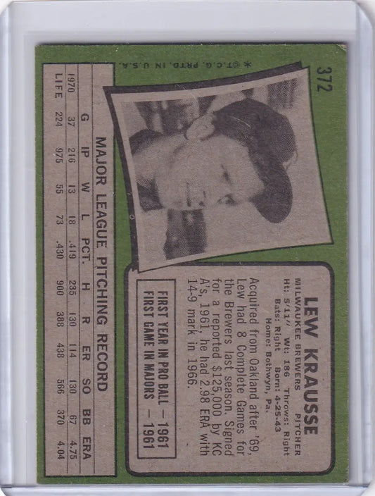1971 Topps Baseball #372 Lew Krausse - Milwaukee Brewers