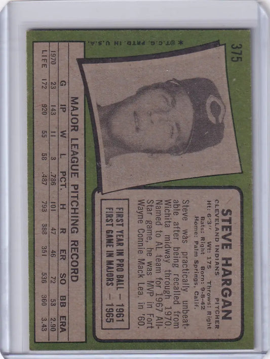 1971 Topps Baseball #375 Steve Hargan - Cleveland Indians
