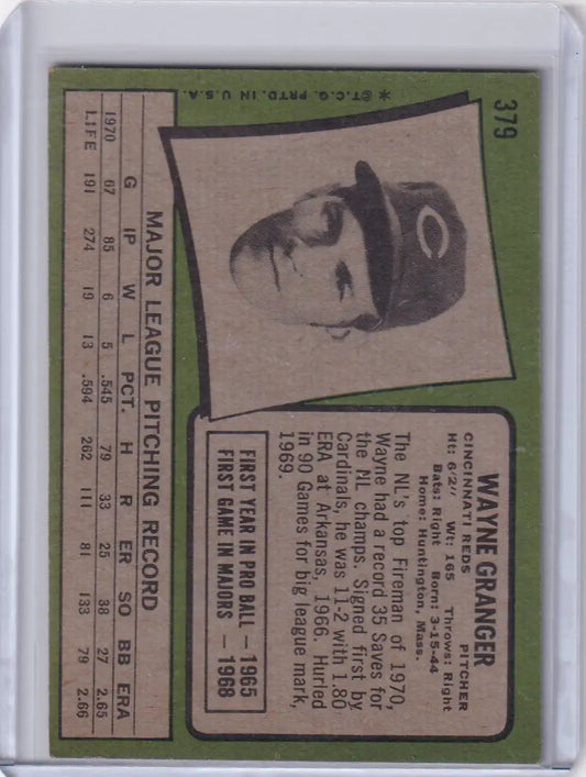 1971 Topps Baseball #379 Wayne Granger - Cincinnati Reds