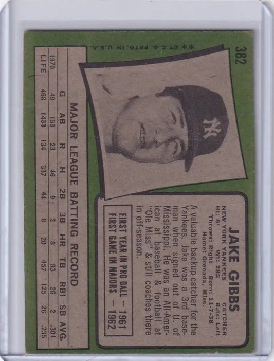 1971 Topps Baseball #382 Jake Gibbs - New York Yankees