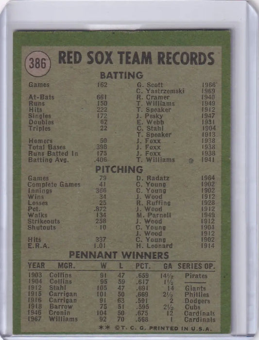 1971 Topps Baseball #386 Boston Red Sox Team