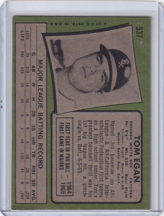 1971 Topps Baseball #537 Tom Egan - Chicago White Sox