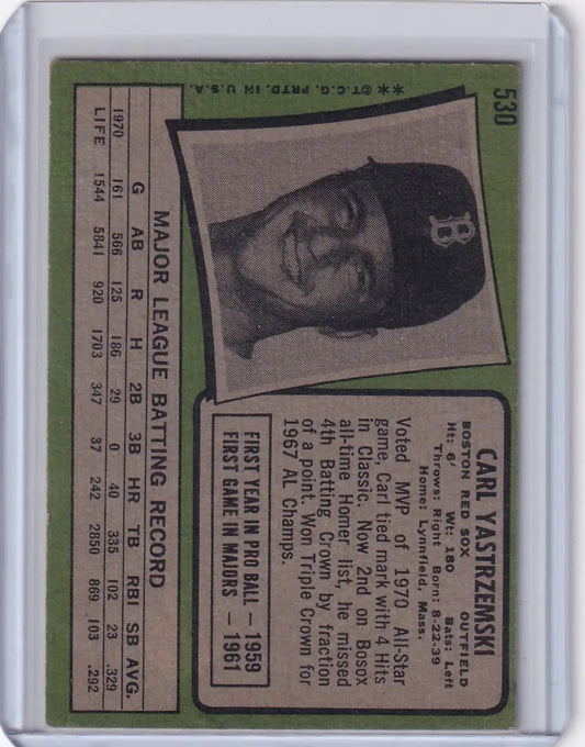 1971 Topps Baseball #530 Carl Yastrzemski - Boston Red Sox