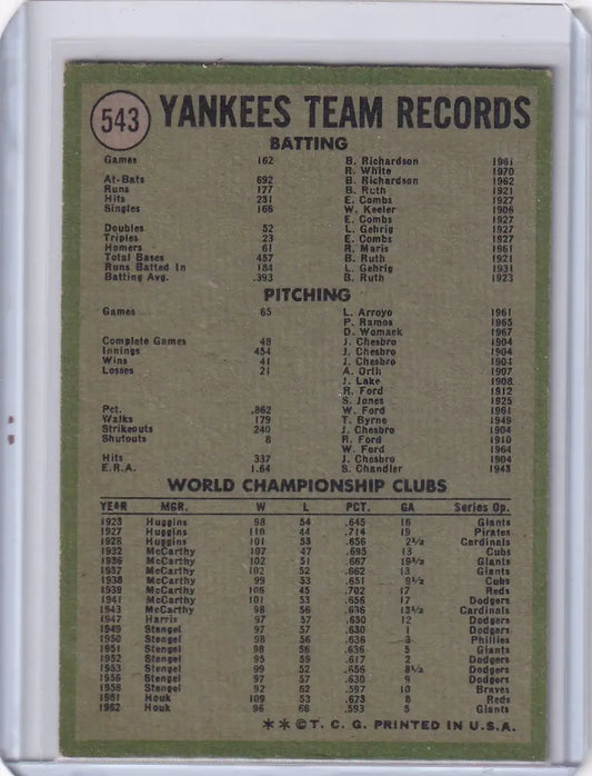 1971 Topps Baseball #543 New York Yankees Team