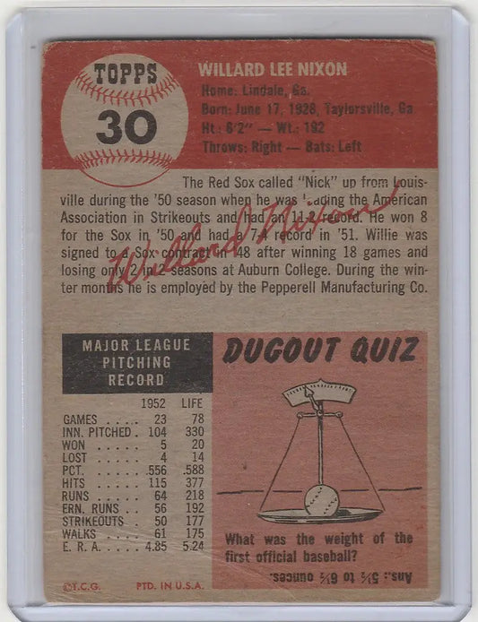 1953 Topps #30 Willard Nixon Boston Red Sox EX