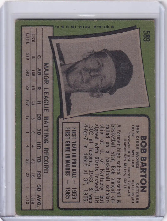 1971 Topps Baseball #589 Bob Barton - San Diego Padres
