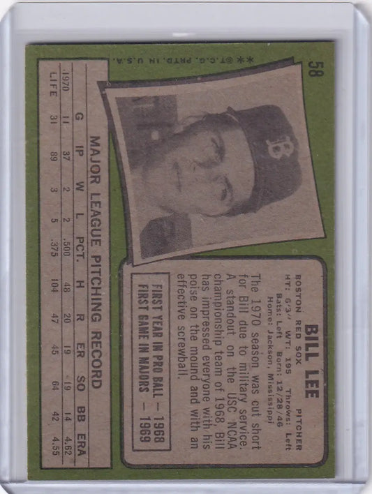 1971 Topps Baseball #58 Bill Lee - Boston Red Sox
