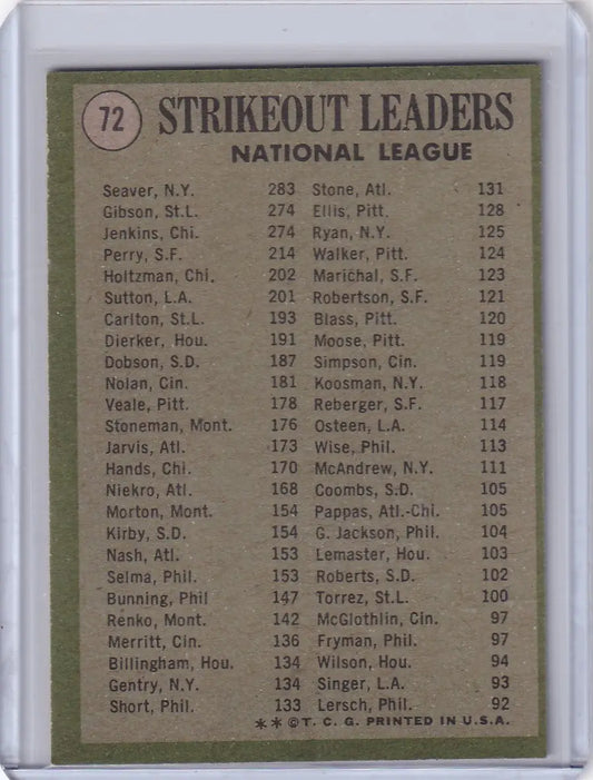 1971 Topps Baseball #72 NL 1970 Strikeout Leaders - Seaver / Gibson / Jenkins