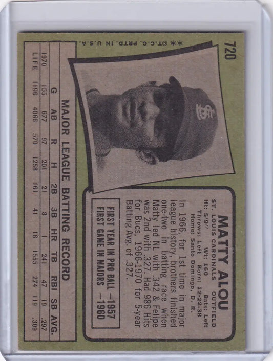 1971 Topps Baseball #720 Matty Alou - St. Louis Cardinals