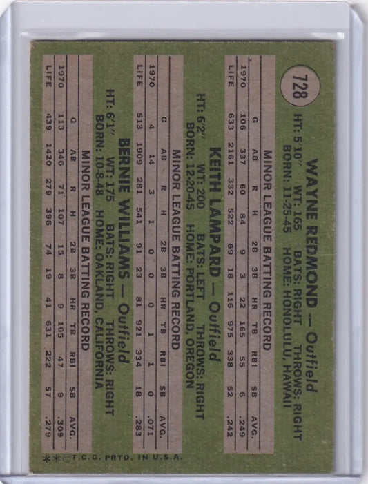 1971 Topps Baseball #728 NL Rookie Outfielders - Redmond / Lampard / Williams