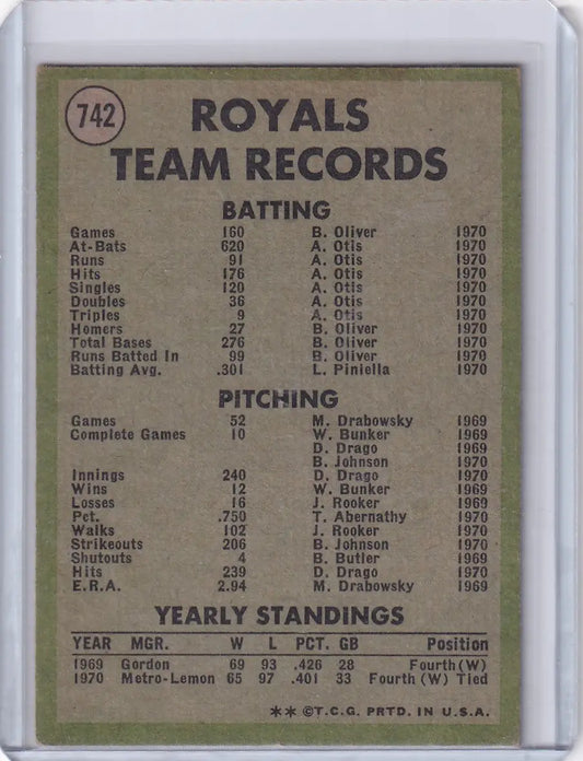 1971 Topps Baseball #742 Kansas City Royals Team