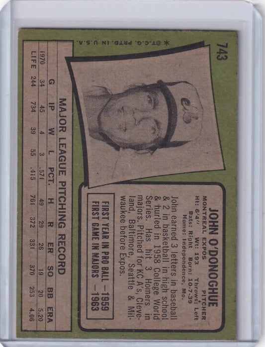 1971 Topps Baseball #743 John O'Donoghue - Montreal Expos SP