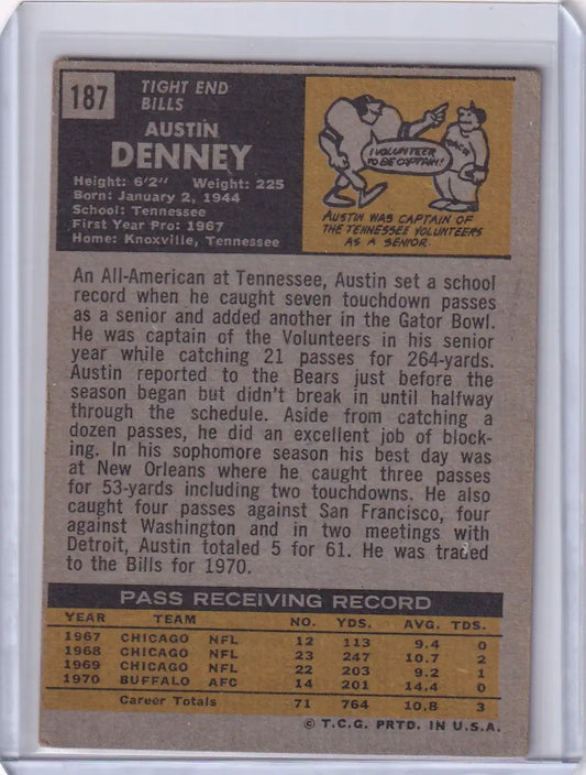 1971 Topps Football #187 Austin Denney - Buffalo Bills RC