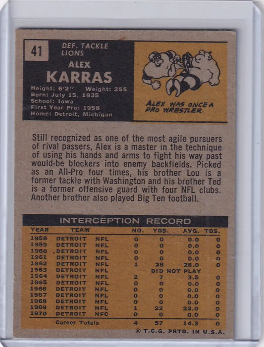 1971 Topps Football #41 Alex Karras - Detroit Lions