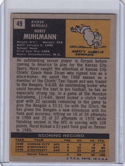 1971 Topps Football #49 Horst Muhlmann - Cincinnati Bengals RC