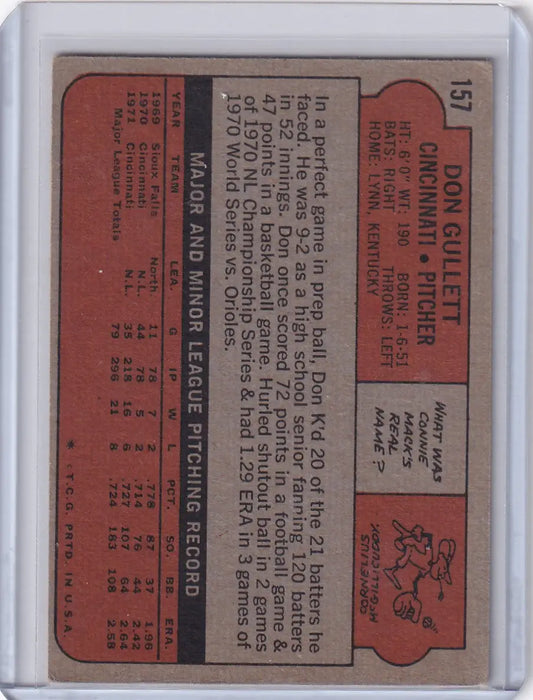 1972 Topps Baseball #157 Don Gullett - Cincinnati Reds