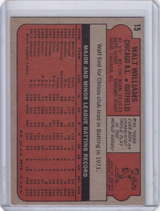 1972 Topps Baseball #15 Walt Williams - Chicago White Sox
