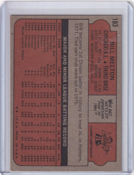 1972 Topps Baseball #183 Bill Melton - Chicago White Sox