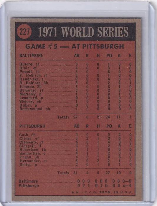 1972 Topps Baseball #227 1971 World Series Game No. 5 WS - Pittsburgh Pirates