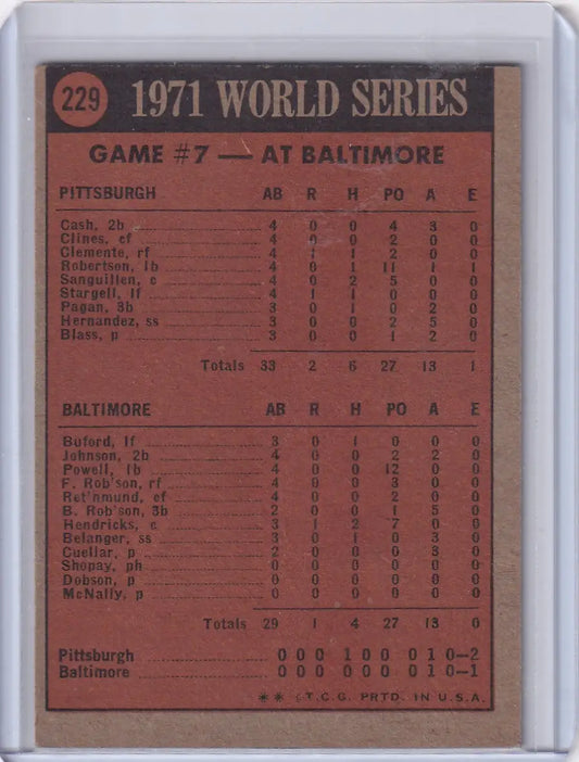 1972 Topps Baseball #229 1971 World Series Game No. 7 WS - Pittsburgh Pirates