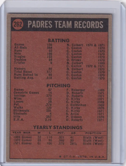 1972 Topps Baseball #262 San Diego Padres TC - San Diego Padres