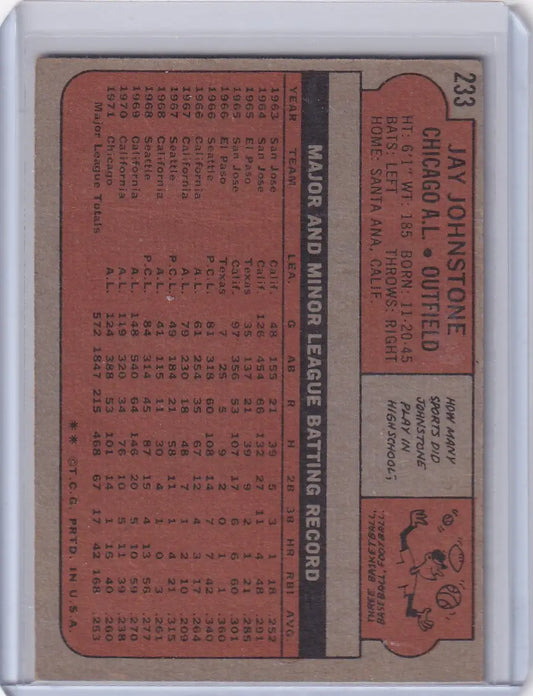 1972 Topps Baseball #233 Jay Johnstone - Chicago White Sox