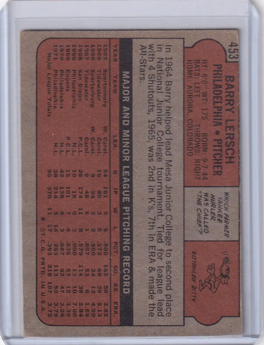 1972 Topps Baseball #453 Barry Lersch - Philadelphia Phillies
