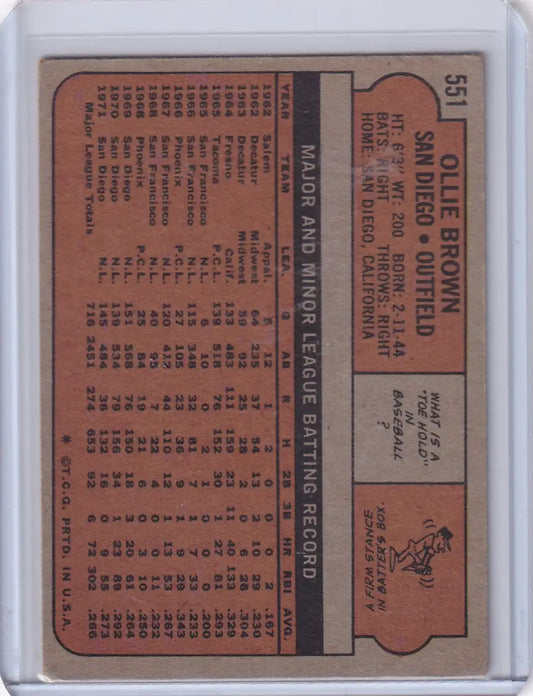 1972 Topps Baseball #551 Ollie Brown - San Diego Padres