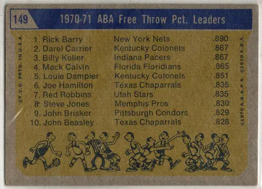 1972-73 Topps ABA Basketball Base Card 149 Free Throw Leaders