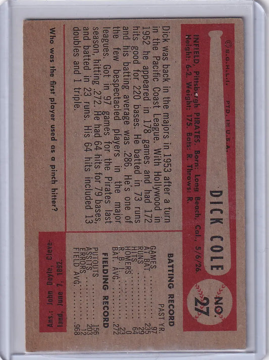 1954 Bowman #27 Dick Cole - Pittsburgh Pirates RC