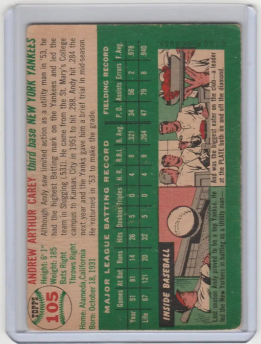 1954 Topps #105 Andy Carey New York Yankees VGEX