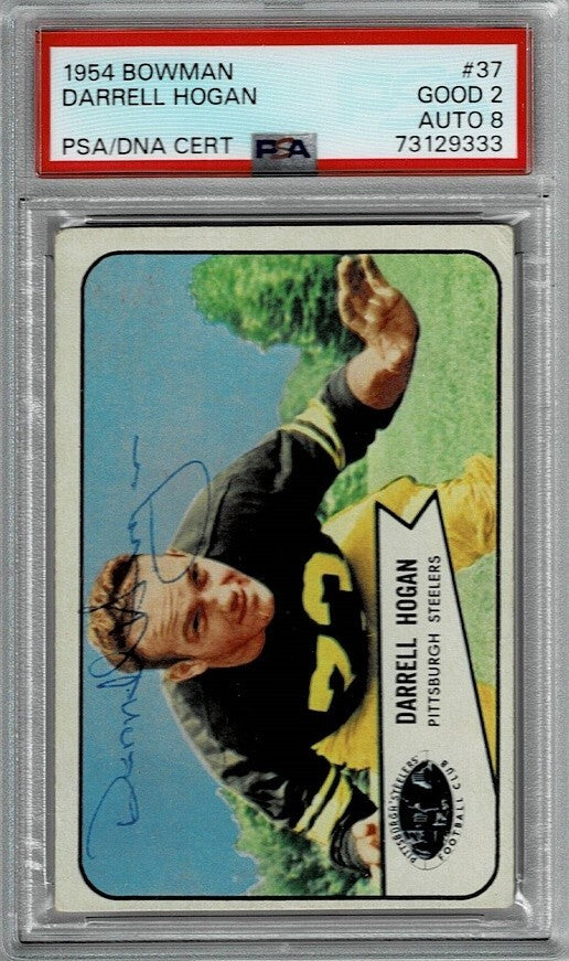 1954 Bowman Auto Card # 37 Darrell Hogan Pittsburgh Steelers PSA 2 DNA 8 Signed