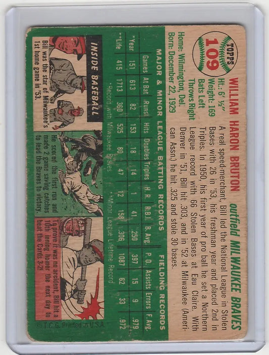 1954 Topps #109 Bill Bruton Milwaukee Braves EX