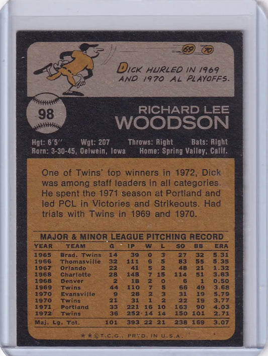 1973 Topps Baseball #98 Dick Woodson - Minnesota Twins