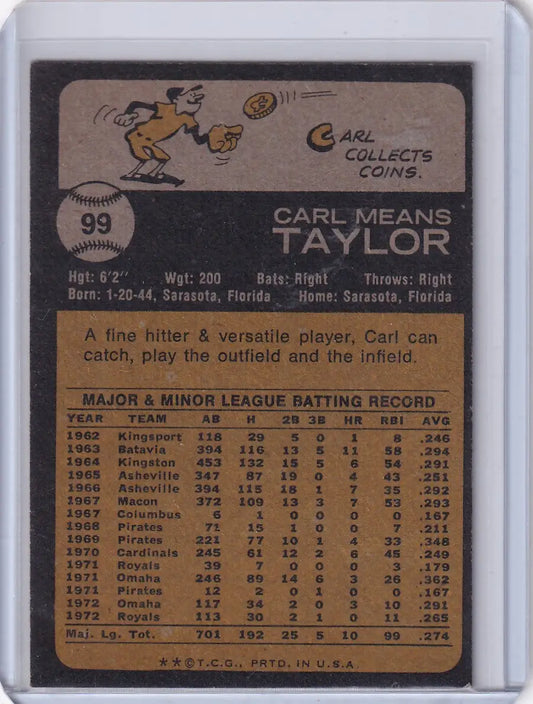 1973 Topps Baseball #99 Carl Taylor - Kansas City Royals