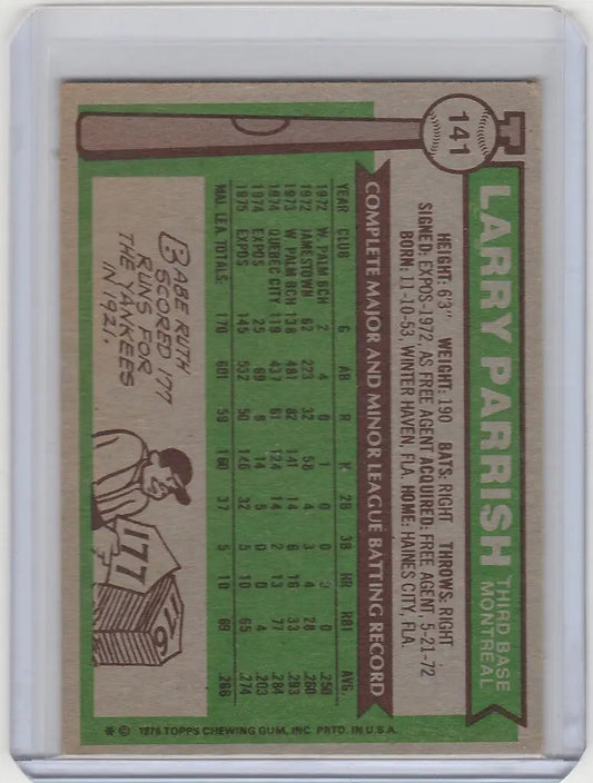 1976 Topps #141 Larry Parrish Montreal Expos EXMT