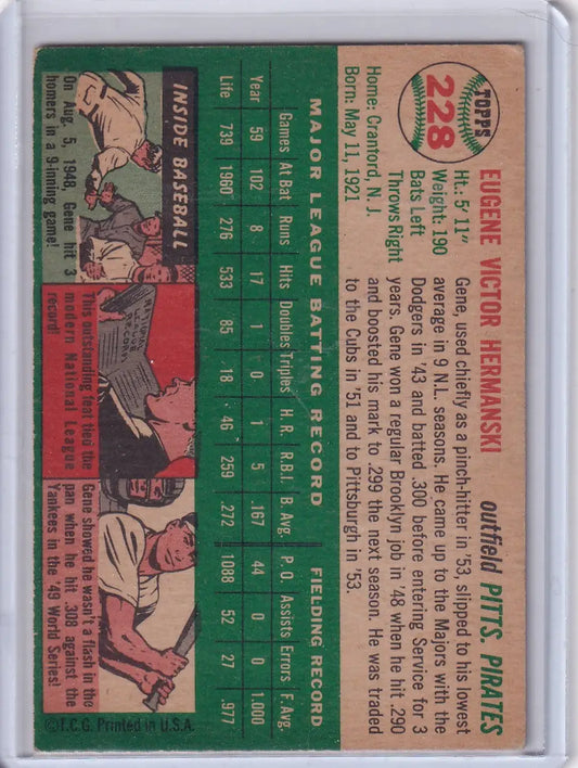 1954 Topps #228 Gene Hermanski - Pittsburgh Pirates