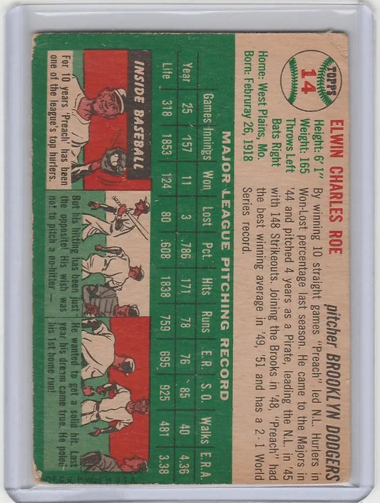 1954 Topps #14 Preacher Roe Brooklyn Dodgers VGEX