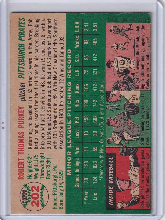 1954 Topps #202 Bob Purkey - Pittsburgh Pirates RC