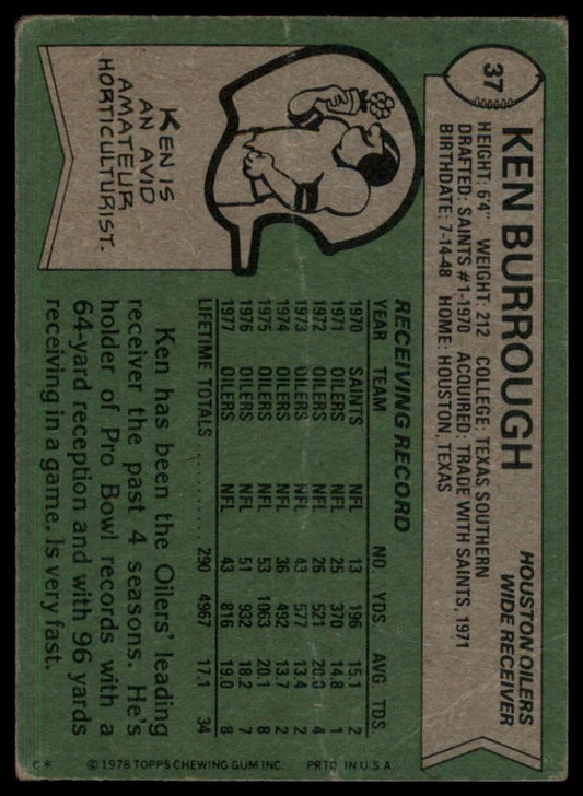 1978 Topps Ken Burrough #37 Houston Oilers Football Card NFL Sports