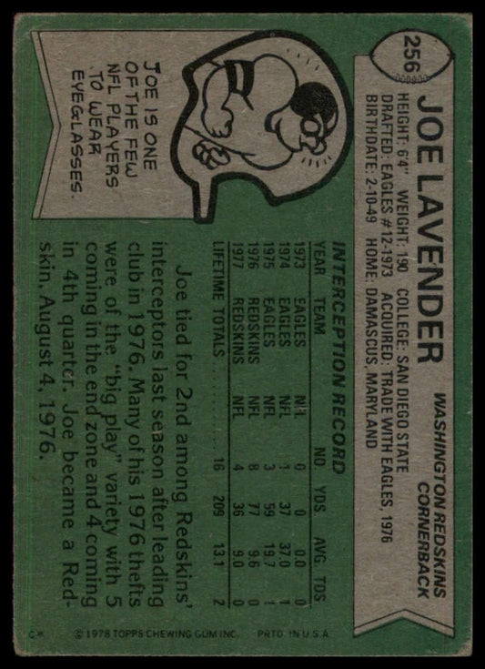 1978 Topps Joe Lavender #256 Washington Redskins Football Card NFL Sports