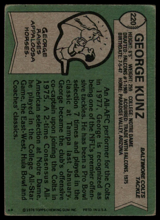 1978 Topps George Kunz #220 Indianapolis Colts Football Card NFL Sports